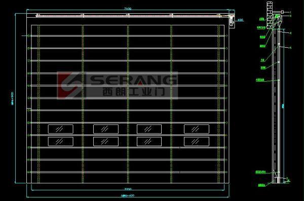 下图为:苏州大型堆积抗风快速卷门CAD示意图: