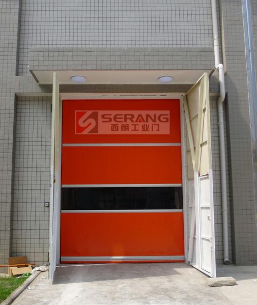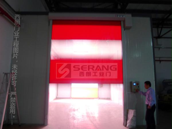 桔红色快速门采用独特冷的并工艺,保证快速门帘布与肋条连接处更加平整美观。整体主框架采用2.0mm厚冷轧钢板外部静电喷塑处理,导轨双排密封毛刷有效地防尘防虫隔温隔湿;控制系统采用变频装置,和人机界面显示器,可同时显示运行状态与故障代码,方便快捷。还选用了双面地磁感应,当车辆行进到距门约两米多近处时,地磁感应开门信号迅速传导,快速门立即自动开启,待车辆经过后,快速门在设定的数秒内自动关闭,实现全自动快速门开闭。此外还连接了双门互锁,实现一门关一门方能开,以保证厂房车间内洁净与封闭状态。